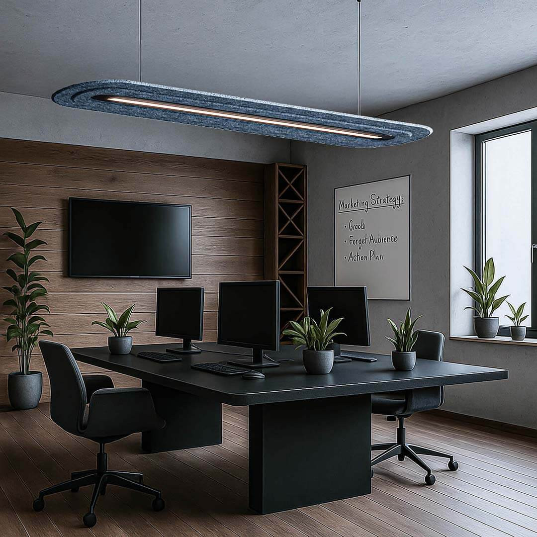 Zasedací a školicí místnosti - svítidla účinně snižují dozvuk, což výrazně zlepšuje srozumitelnost řeči během prezentací a školení. Přesné osvětlení podporuje soustředění účastníků, usnadňuje učení a zvyšuje angažovanost během jednání. Příjemná akustika a osvětlení navíc minimalizují únavu během dlouhých školení.