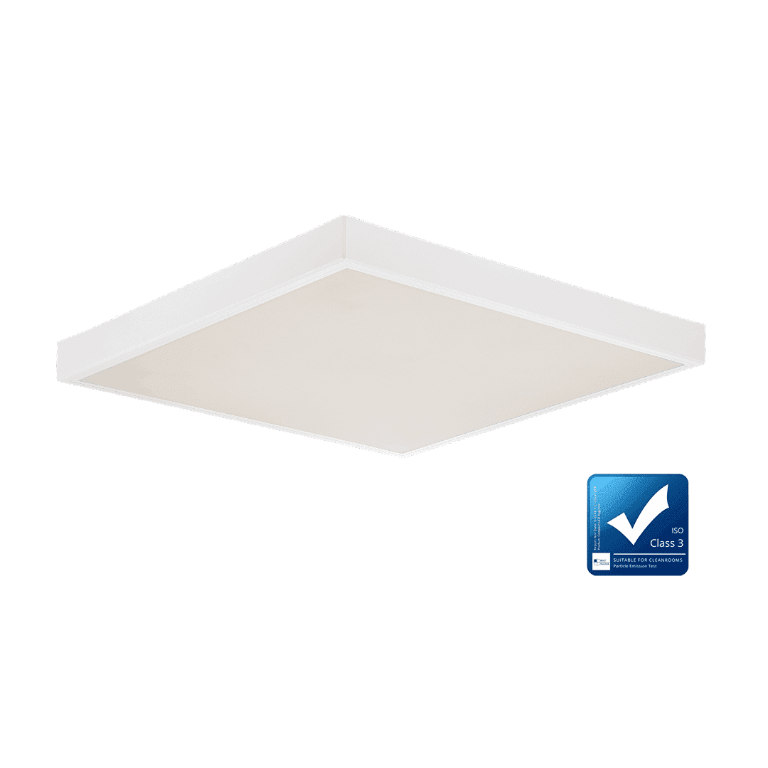 COMPACT LED HYGIENIC je určen pro místnosti vyžadující speciální ochranu proti choroboplodným zárodkům, jako jsou nemocnice, pokoje pacientů, lékařské kliniky. Svítidlo získalo certifikát potvrzující, že je vhodné pro použití v čistých prostorách s uvedenou třídou čistoty vzduchu ISO 3 - 9 podle normy CLEANROOM ISO 14644-1:2015.s.